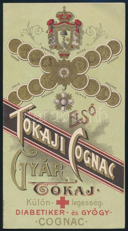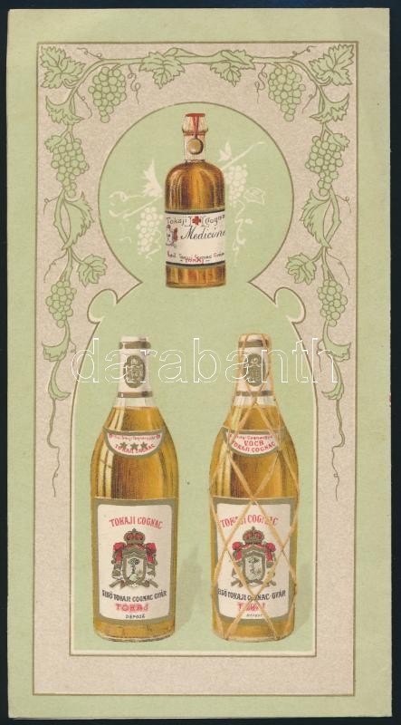 1906 Első Tokaji Cognac Gyár litho reklámlap, Seidner Műintézetéből, ... https://www.darabanth.com/de/337-Fernauktion/337.0/Kunst-Dokumente-andere-Sammelgebiete/Werbungen~500021/1906-Elso-Tokaji-Cognac-Gyar-litho-reklamlap-Seidner-Muintezetebol-18x10-cm~II1894600