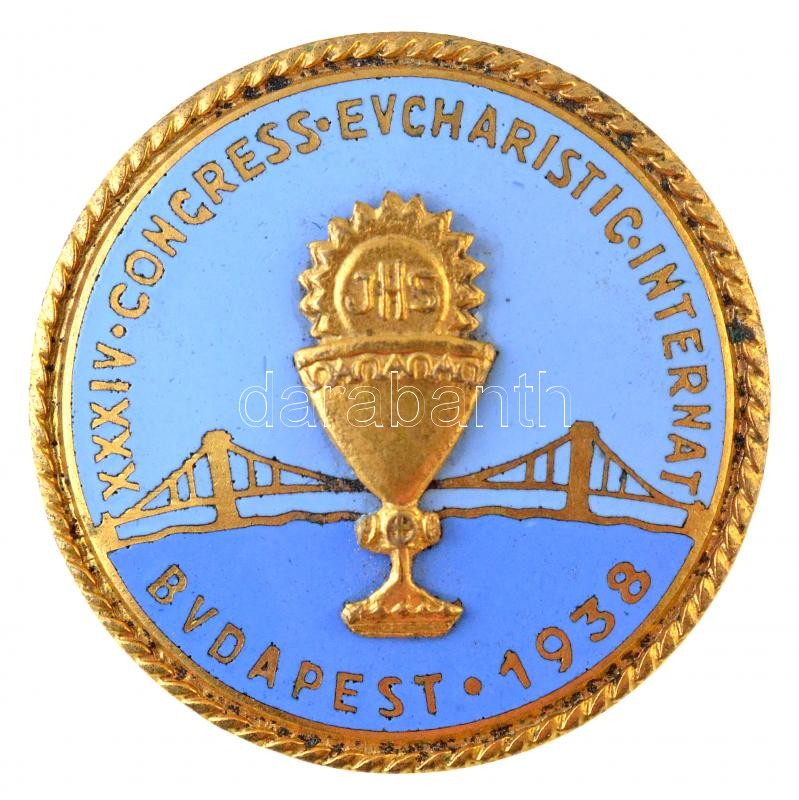 Beschreibung: Madarassy Walter (1909-1994) 1938. "XXXIV. Nemzetközi Eucharisztikus Kongresszus Budapest" zománcozott fém jelvény hátlapon "TÖRV. VÉD." jelzéssel (25mm) T:2