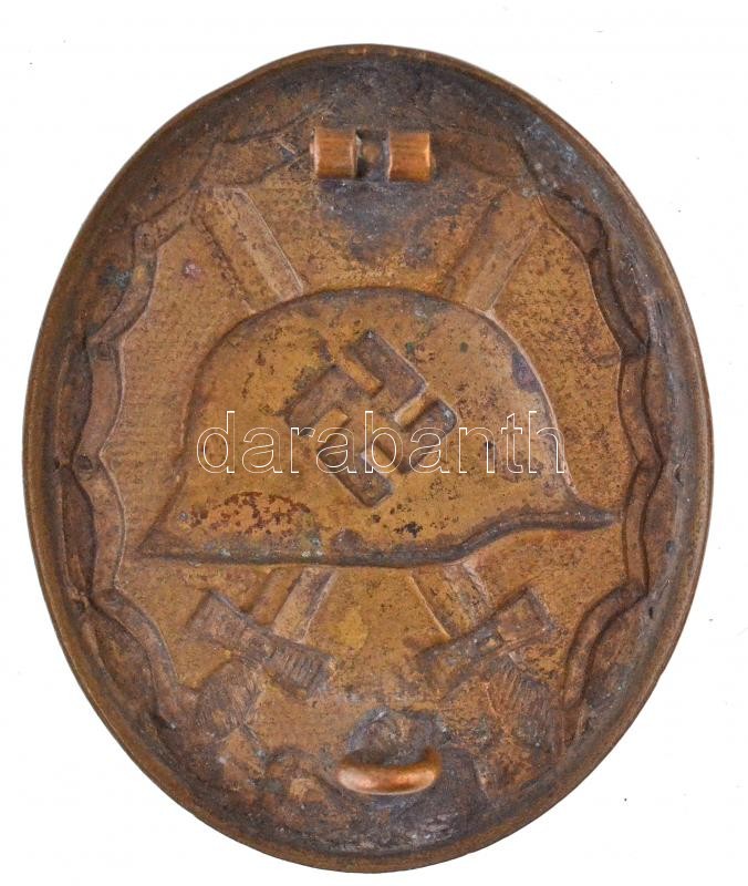 Német Harmadik Birodalom ~1939-1945. "Sebesülés jelvény, fekete fokozat?" nácitlanított fém kitüntetés + Igazolás mely a papír tulajdonosáról igazolja, hogy nem volt kapcsolata nácikkal T:2- tű hiányzik