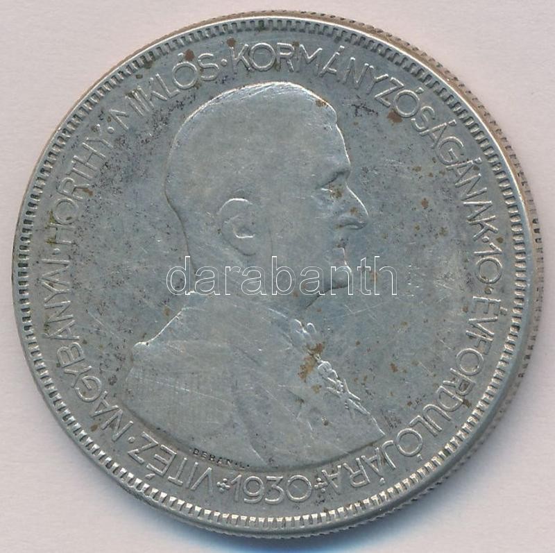 Beschreibung: 1930. 5P Ag "Horthy jobbra" T:2-