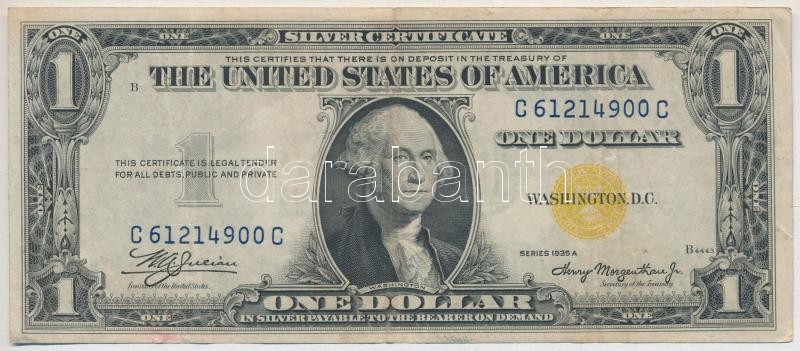 Amerikai Egyesült Államok 1934-1945. (1935A) 1$ "Silver Certificate - kisméretű" sárga pecsét, "William Alexander Julian - Henry Morgenthau Jr." T:III,III- USA 1934-1945. (1935A) 5 Dollars "Silver Certificate - small size" Yellow seal, "William Alexander Julian - Henry Morgenthau Jr." C:F,VG Krause 416.a