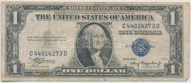 Amerikai Egyesült Államok 1935-1945. (1935A) 1$ "William Alexander Julian - Henry Morgenthau" kék pecsét T:III-