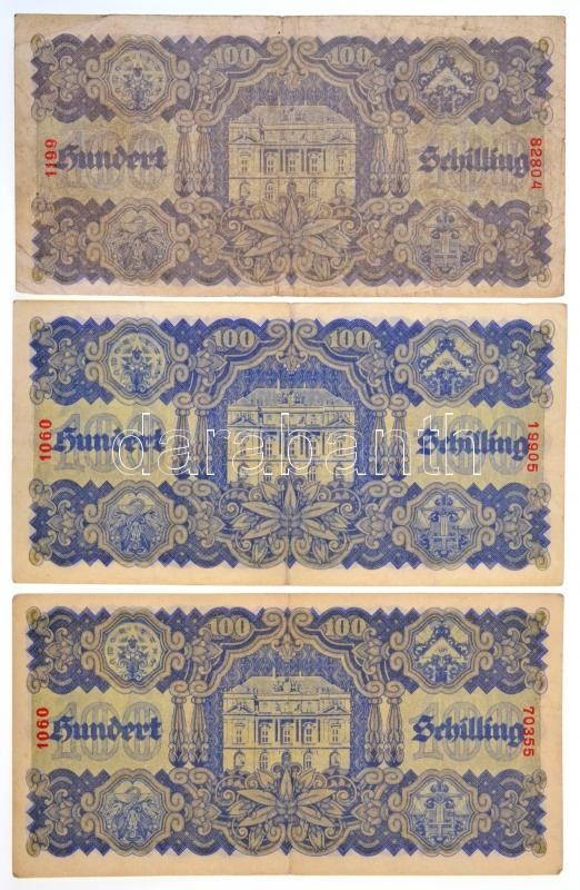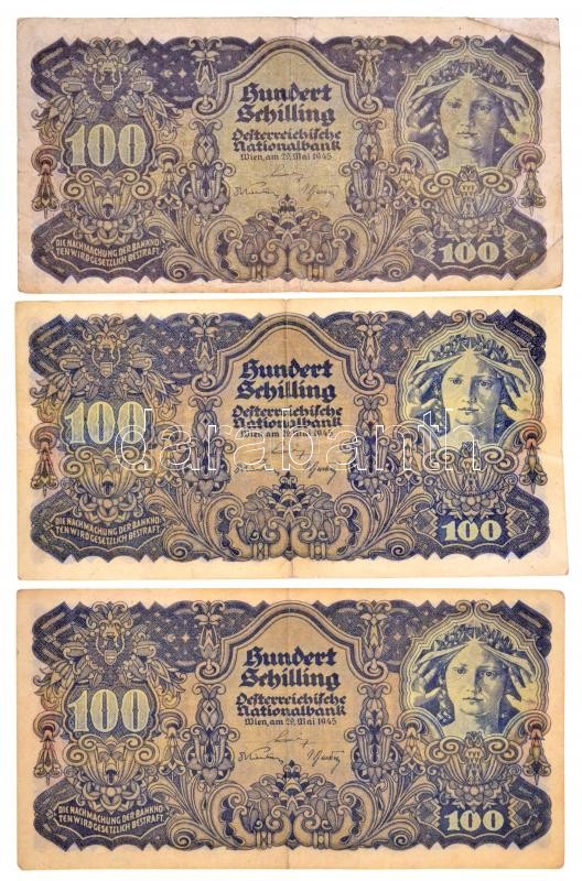 Aus... https://www.darabanth.com/de/337-Fernauktion/337.0/Numismatik/Weltweit-Banknoten~1500013/Ausztria-1945-100Sch-3x-ketto-kek-es-egy-lilas-arnyalatu-TIII-Austria-1945-100-Schilling~II1889979