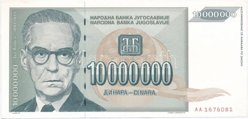 Yugoslavia 1993. 10.000.000 Dinara... https://www.darabanth.com/de/337-Fernauktion/337.0/Numismatik/Weltweit-Banknoten~1500013/Jugoszlavia-1993-10000000D-TI--Yugoslavia-1993-10000000-Dinara-CAU~II1891298