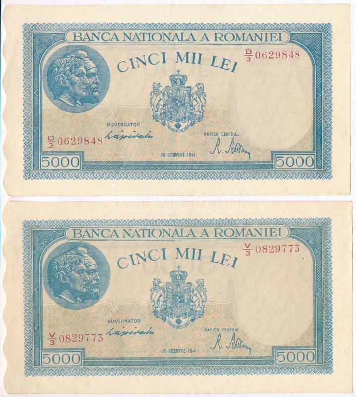 Romani... https://www.darabanth.com/de/337-Fernauktion/337.0/Numismatik/Weltweit-Banknoten~1500013/Romania-1944-5000L-4x-egyugrasos-sorszamkoveto-parral-TII--Romania-1944-5000-Lei-4x-wi~II1895391