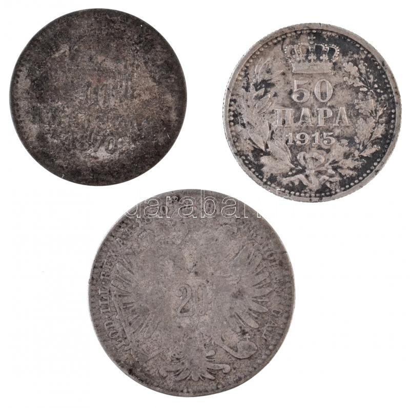 3db-os vegyes külföldi rossz tartású és sérült ezüstpénz tétel T:3 ü. 3pcs of various silver coins in bad condition C:F ding