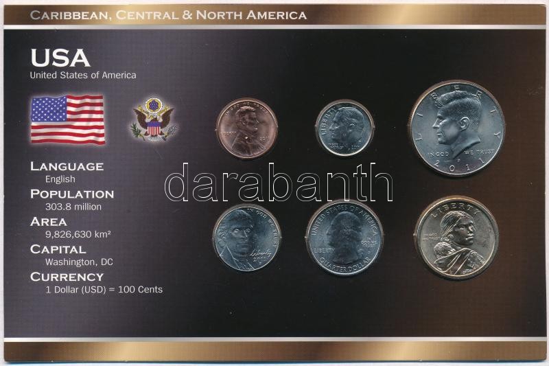 Amerikai Egyesült Államok 2011. 1c-1$ (6xklf) fémpénz szettben, német nyelvű leírással T:1