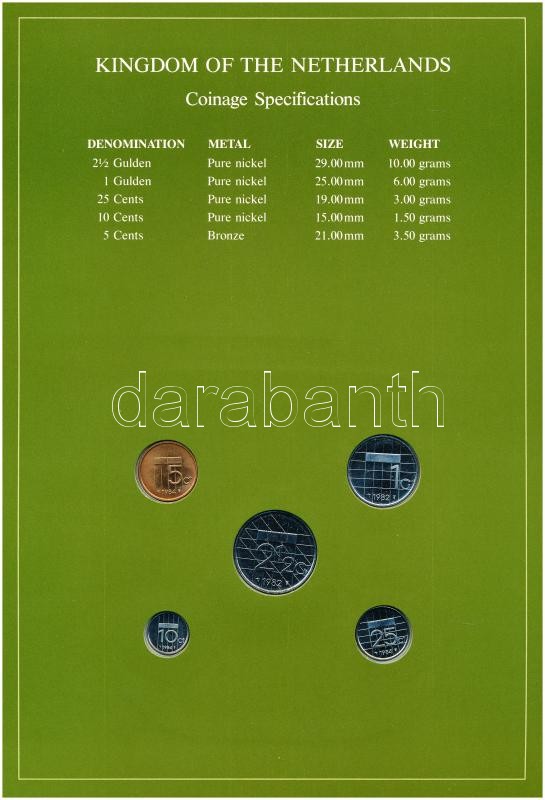 Hollandia 1982-1984. 5c-2 1/2G (5xklf), "Coin Sets of All Nations" forgalmi szett felbélyegzett kartonlapon T:1 Netherlands 1982-1984. 5 Cents - 2 1/2 Guldens (5xdiff) "Coin Sets of All Nations" coin set on cardboard with stamp C:UNC
