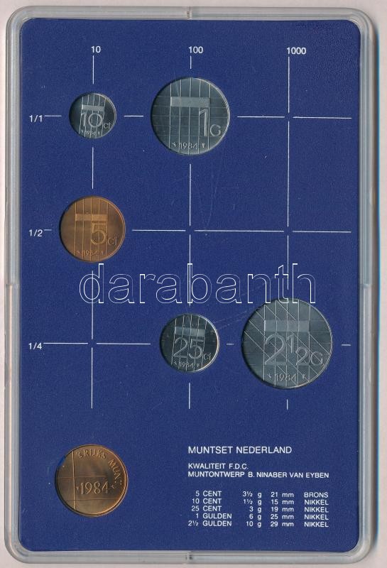 Hollandia 1984. 5c - 2 1/2G (5xklf) + 1984. "s Rijks Munt 1984 (Királyi verde)" Br zseton, műanyag tokban T:1 Netherlands 1984. 5 Cents - 2 1/2 Gulden (5xdiff) + 1984. "s Rijks Munt 1984 (Royal Mint)" Br jeton, in plastic case C:UNC
