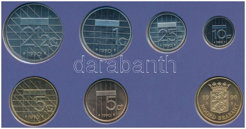Hollandia 1990. 5c-5G (6xklf) + "Noord-Brabant" emlékérem forgalmi sor karton dísztokban T:1 Netherlands 1990. 5 Cents - 5 Gulden (6xdiff) + "Noord-Brabant" commemorative coin, coin in set cardboard case C:UNC