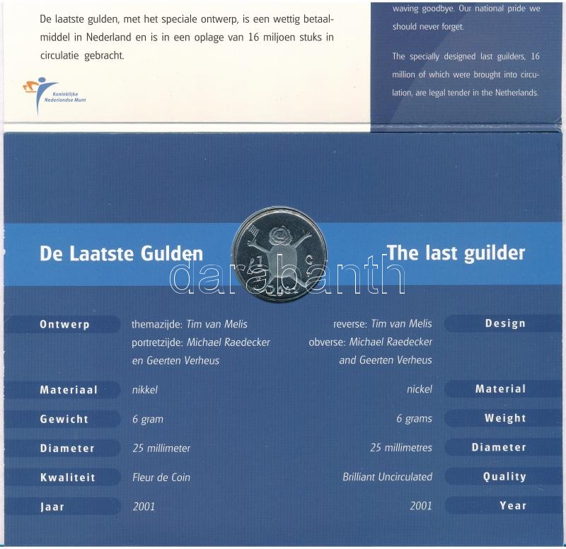 Hollandia 2001. 1G Ni "Az utolsó Gulden" eredeti díszkiadásban T:BU Netherlands 2001. 1 Gulden Ni "The last Guilder" in original packing C:BU