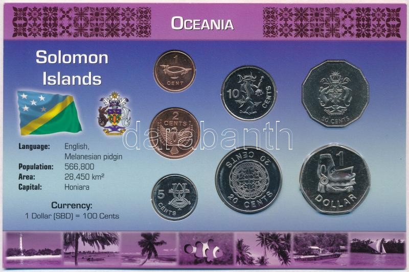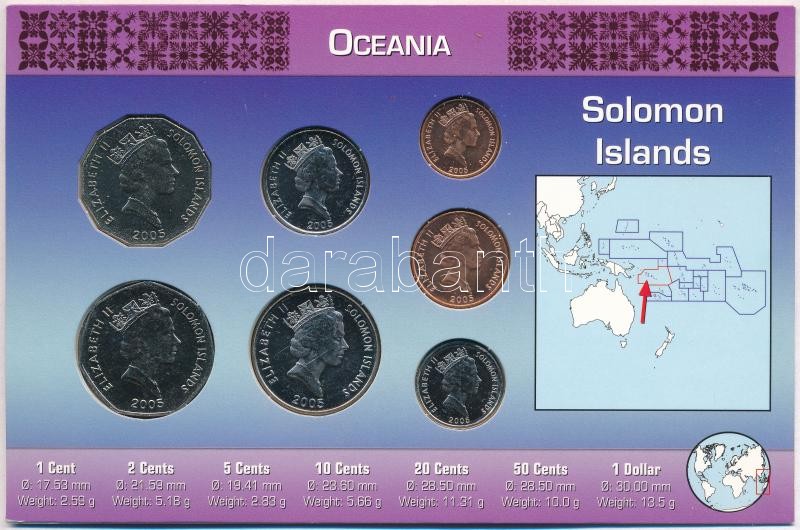 Solomon Islands 2005. 1 Cent - 1 Dollar (7xdiff) coin set with information in Dutch C:UNC