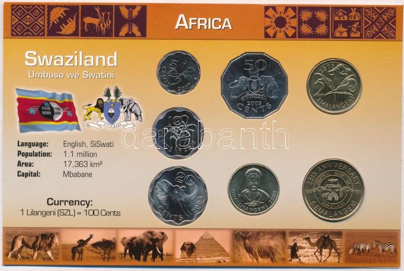 Szváziföld 1999-2007. 5c-5L (7xklf) fémpénz szettben, holland nyelvű leírással T:1