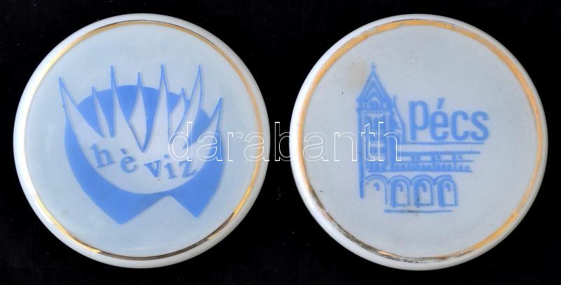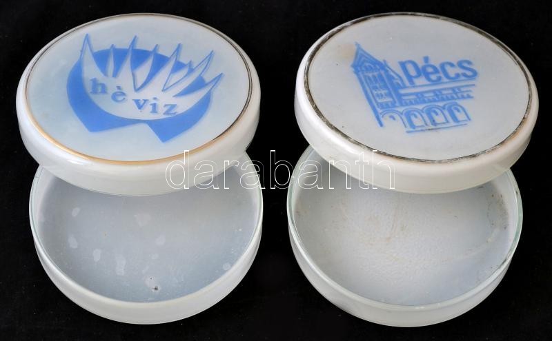 Beschreibung: Pécs és Hévíz, 2 db üveg dobozka, kopásnyomokkal, d: 9,5 cm
