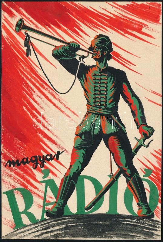 cca 1930 Magyar Rádió - dekoratív reklámplakátterv, 19×13 cm https://www.darabanth.com/de/337-Fernauktion/337.0/Poster/Plakat~500030/cca-1930-Magyar-Radio-dekorativ-reklamplakatterv-19C39713-cm~II1893710