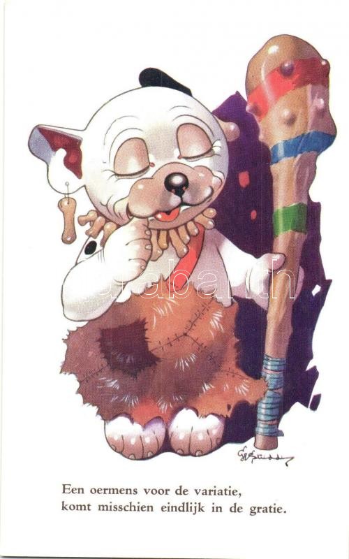 Beschreibung: Eeen oermens voor de variatie... / Prehistoric Bonzo dog. Valentine & Sons Ltd. Bonzo Postcard 4314. s: G. E. Studdy