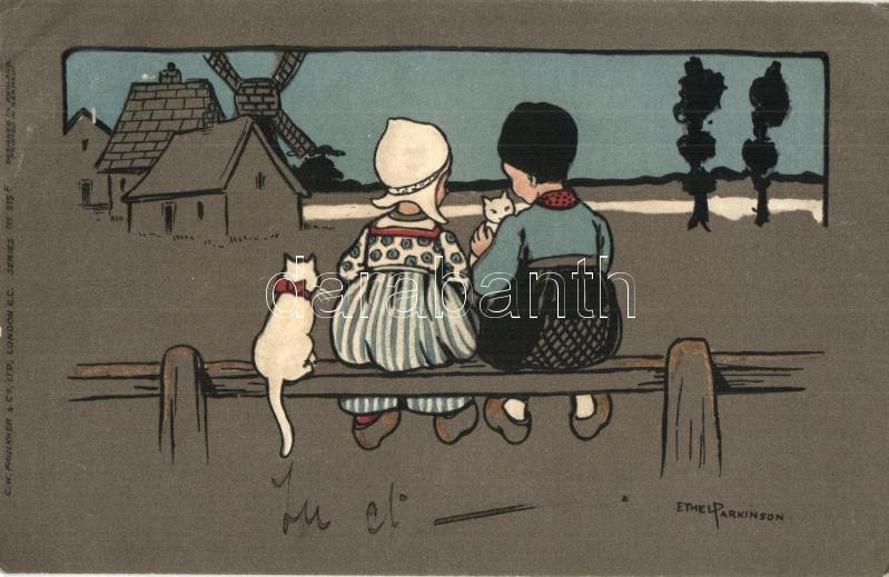 Beschreibung: Young Dutch couple with cats, C. W. Faulkner & Co. Series Nr. 915. s: Ethel Parkinson
