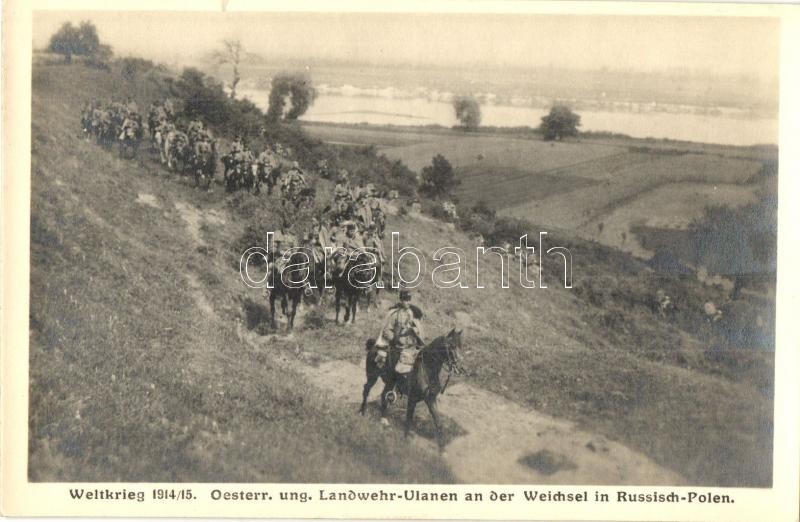 Weltkrieg 1914/15. Oesterr. ung. Landwehr-Ulanen an der Weichsel in Russisch-Polen / WWI Austro-Hungarian K.u.K. military uhlan cavalrymen in Russian Poland by the Vistula river