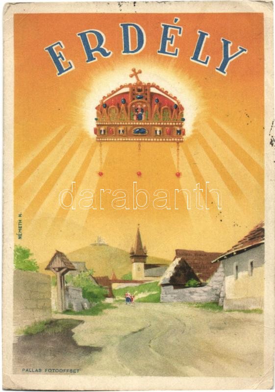 Erdélyi részek visszacsatolásának emlékére. Megjöttünk testvérek! Hozzuk a szívünket, de ha kell, Erdélyért adjuk a vérünket! / entry of the Hungarian troops to Transylvania, irredenta propaganda. s: Németh N. (EK)