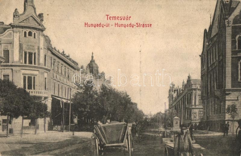 Temesvár, Timisoara; Hunyady út, Délvidéki Kaszinó / street, casino https://www.darabanth.com/de/338-Fernauktion/338.0/Ansichtskarten/Siebenburgen~2000006/Temesvar-Timisoara-Hunyady-ut-Delvideki-Kaszino-street-casino~II1901232