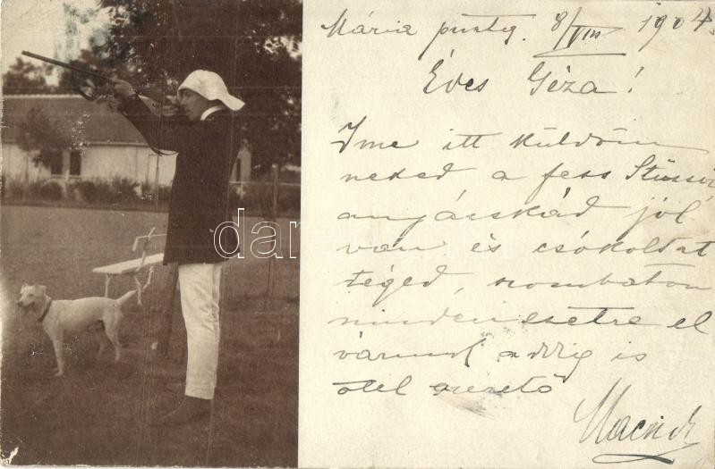 1904 Máriapuszta (Tata, Tata-Tóváros), vadász puskával és kutyával. ph... https://www.darabanth.com/de/338-Fernauktion/338.0/Ansichtskarten/Ungarn~2000005/1904-Mariapuszta-Tata-Tata-Tovaros-vadasz-puskaval-es-kutyaval-photo-EK~II1898082