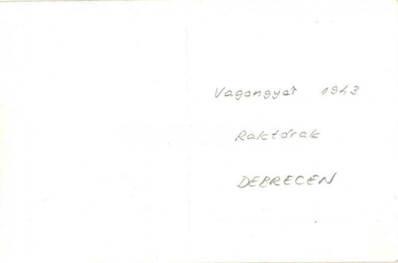 1943 Debrecen, vagongyári raktárak, vasúti sínek. photo https://www.darabanth.com/de/338-Fernauktion/338.0/Ansichtskarten/Ungarn~2000005/1943-Debrecen-vagongyari-raktarak-vasuti-sinek-photo~II1900315