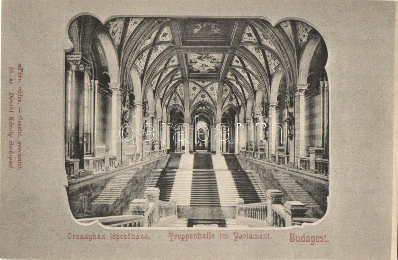 Budapest V. Országház lépcsőháza. Divald Károly 25. sz. https://www.darabanth.com/de/338-Fernauktion/338.0/Ansichtskarten/Ungarn~2000005/Budapest-V-Orszaghaz-lepcsohaza-Divald-Karoly-25-sz~II1789239