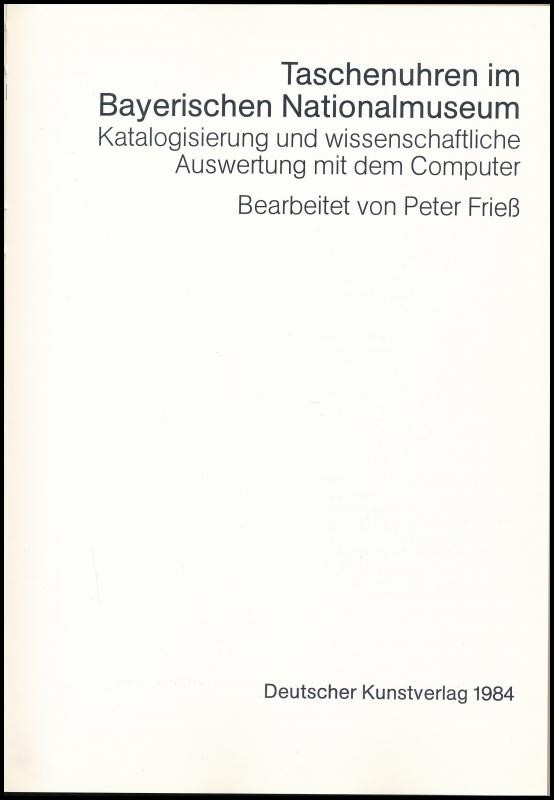Taschenuhren im Bayerischen Nationalmuseum. Katalogisierung und wissenschaftliche Auswertung mit dem Computer. Szerk.: Peter Frieß. München, 1984, Deutscher Kunstverlag. Német nyelven. Kiadói egészvászon-kötés, kiadói papír védőborítóban.