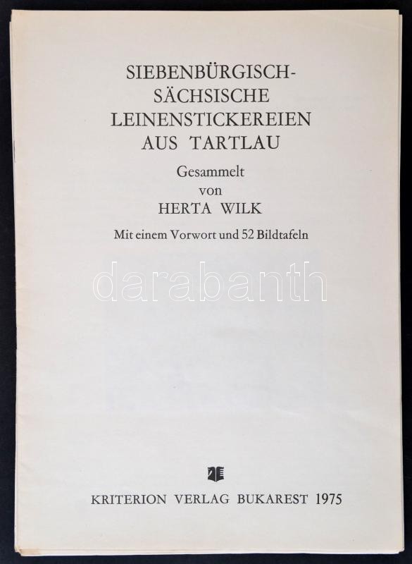 Wilk, Herta: siebenbürgisch-sächsische Leinenstickereien aus Tartlau. ... https://www.darabanth.com/de/338-Fernauktion/338.0/Bucher/Bucher-Architektur-Kunst~1500006/Wilk-Herta-siebenburgisch-sachsische-Leinenstickereien-aus-Tartlau-Bukarest-1975-Kriterion-Ve~II1898381