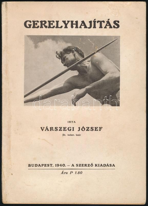 Várszegi József: Gerelyhajítás. Bp., 1940, A szerző. Kiadói papírkötés, képekkel illusztrált, jó állapotban.