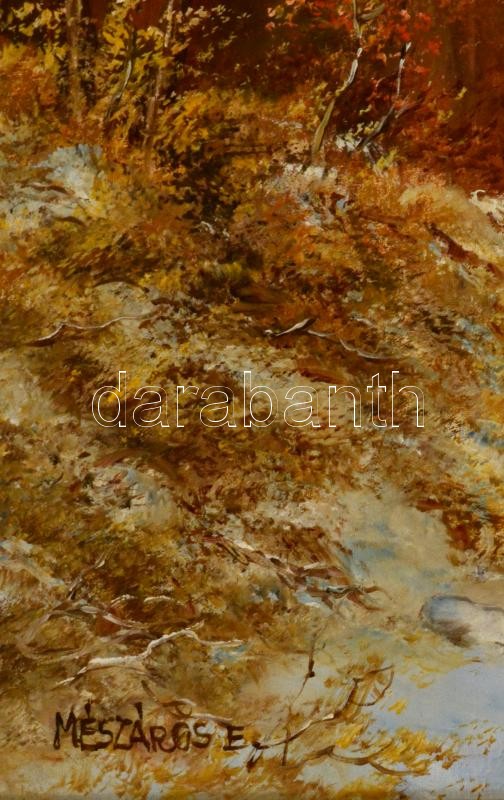 Beschreibung: Mészáros Erzsébet (1962-): Fogadó. Olaj, farost, jelzett, keretben, 40×50 cm