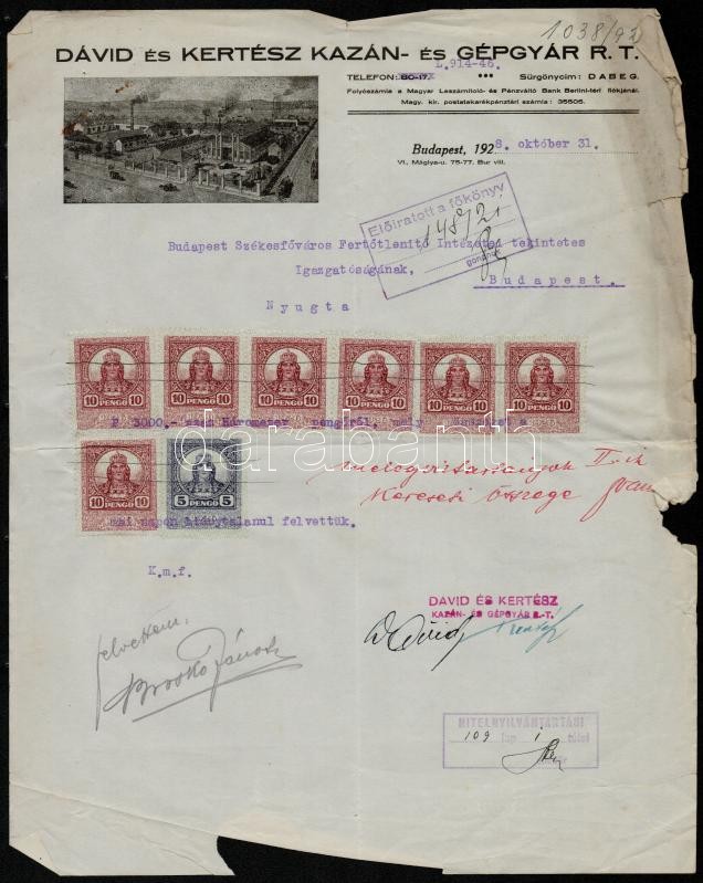 1928 Bp. VI., Dávid és Kertész Kazán- és Gépgyár Rt. fejléces számlája... https://www.darabanth.com/de/338-Fernauktion/338.0/Kunst-Dokumente-andere-Sammelgebiete/Dokument~500017/1928-Bp-VI-David-es-Kertesz-Kazan-es-Gepgyar-Rt-fejleces-szamlaja-a-gyar-letkepe~II1899627