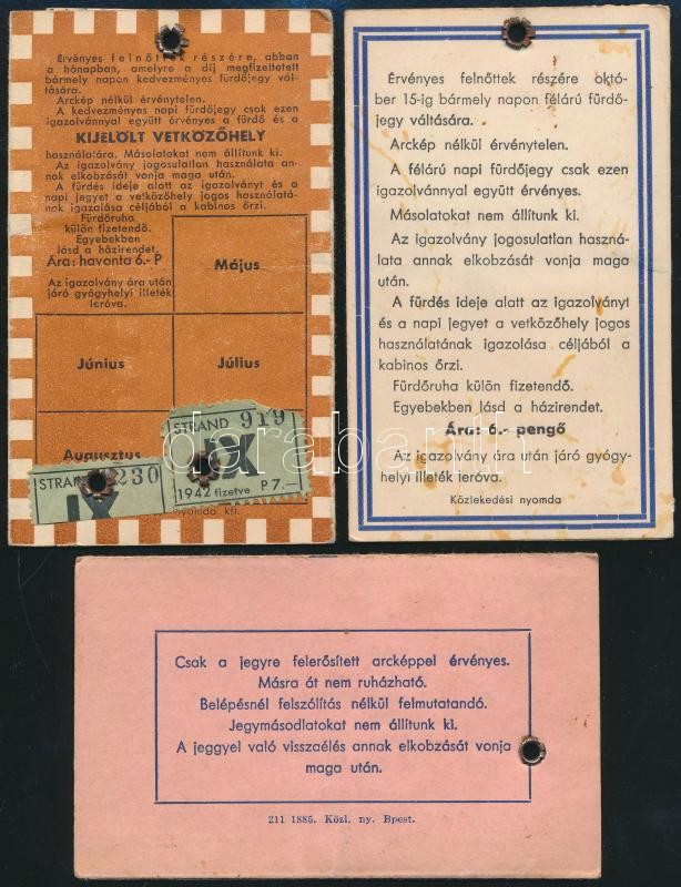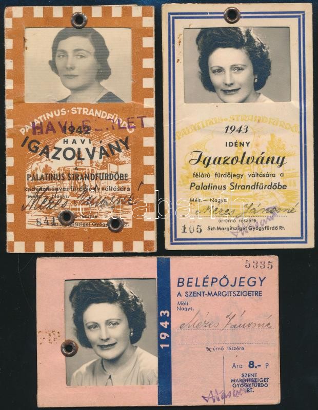 1942-1943 3 db fényképese strandbelépőjegy a Palatinus Strandfürdőbe https://www.darabanth.com/de/338-Fernauktion/338.0/Kunst-Dokumente-andere-Sammelgebiete/Dokument~500017/1942-1943-3-db-fenykepese-strandbelepojegy-a-Palatinus-Strandfurdobe~II1901414