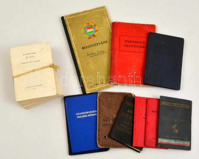 Vegyes igazolvány tétel + Ki ez? irodalomtörténeti társasjáték (1957) https://www.darabanth.com/de/338-Fernauktion/338.0/Kunst-Dokumente-andere-Sammelgebiete/Dokument~500017/Vegyes-igazolvany-tetel-plus-Ki-ez-irodalomtorteneti-tarsasjatek-1957~II1897825