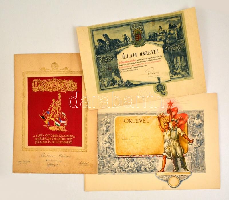 Beschreibung: cca 1935-1960 3 db vegyes okmány, közte ebtenyésztő