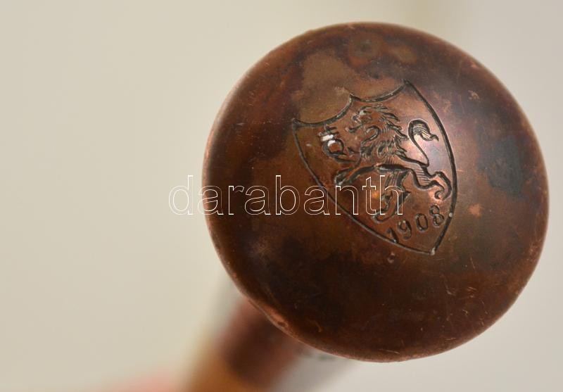 Beschreibung: Hiányos lovaglópálca címeres, "MJSE Hubertus" és "Szentendre 1941 október" feliratos réz gombbal, h: 55,5 cm