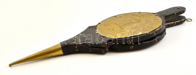 Szélmalmos fa fújtató réz-bőr szerelékkel, kis szakadásokkal, h:48 cm https://www.darabanth.com/de/338-Fernauktion/338.0/Kunst-Dokumente-andere-Sammelgebiete/Flohmarkt~500011/Szelmalmos-fa-fujtato-rez-bor-szerelekkel-kis-szakadasokkal-h48-cm~II1896569