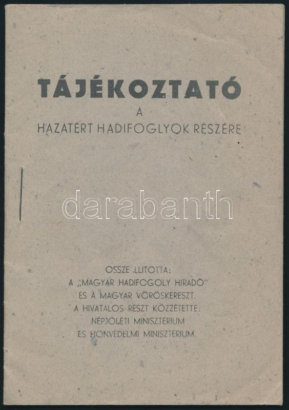 1945 Tájékoztató a hazatért hadifoglyok részére. Magyar Hadifogoly Hir... https://www.darabanth.com/de/338-Fernauktion/338.0/Kunst-Dokumente-andere-Sammelgebiete/Militaria~500027/1945-Tajekoztato-a-hazatert-hadifoglyok-reszere-Magyar-Hadifogoly-Hirado-30p~II1897596
