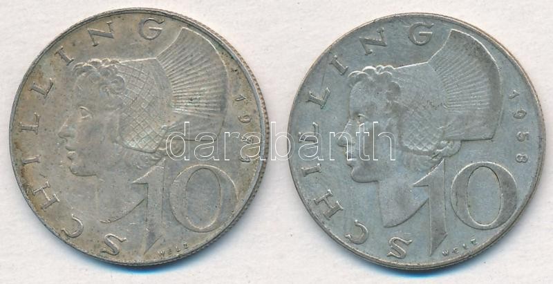 Austria 1958-1971. 10 Sc... https://www.darabanth.com/de/338-Fernauktion/338.0/Numismatik/Weltweit-Munzen~1000013/Ausztria-1958-1971-10Sch-Ag-2x-T2-patina-Austria-1958-1971-10-Schilling-Ag-2x-CXF-patina~II1897230