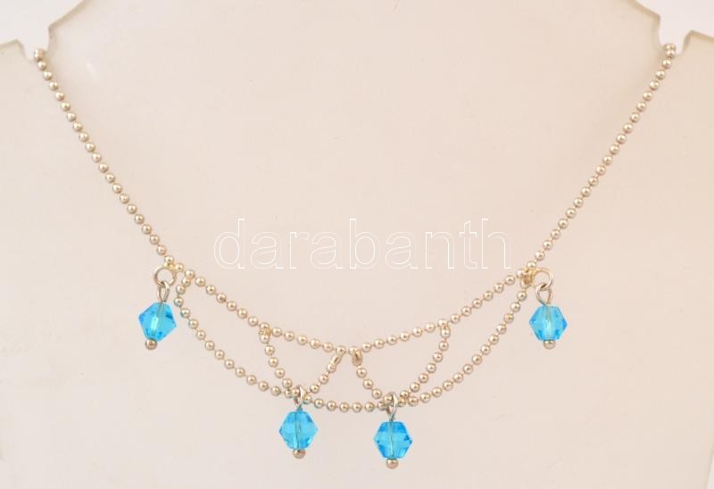 Beschreibung: Ezüst(Ag) kék gyöngyökkel díszített bokalánc, állítható hosszúság, jelzett, h: 22,5×25,5 cm, bruttó: 2,6 g