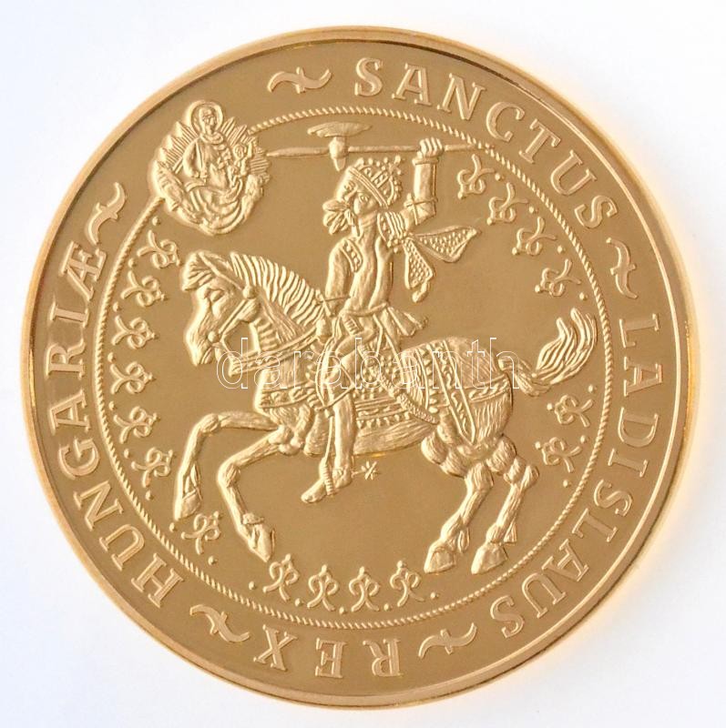Beschreibung: DN "Magyar Aranyóriások - Szent László 100 Pengő 1929" aranyozott Cu utánveret T:PP
