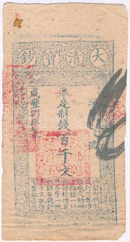 China / Qing Dyna... https://www.darabanth.com/de/339-Fernauktion/339.0/Numismatik/Weltweit-Banknoten~1500016/Kina-Csing-dinasztia-1858-100000C-hamis-TIII--China-Qing-Dynasty-1858-100000-Cash-fake-~II1908752