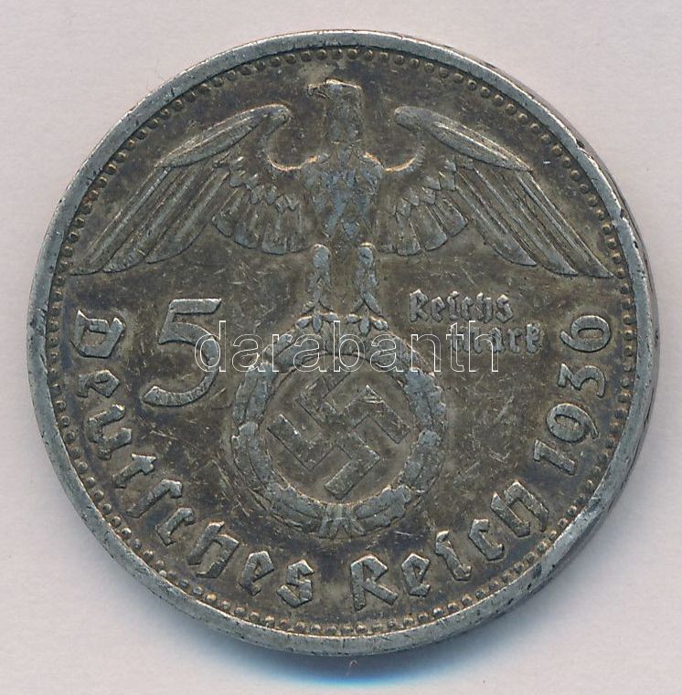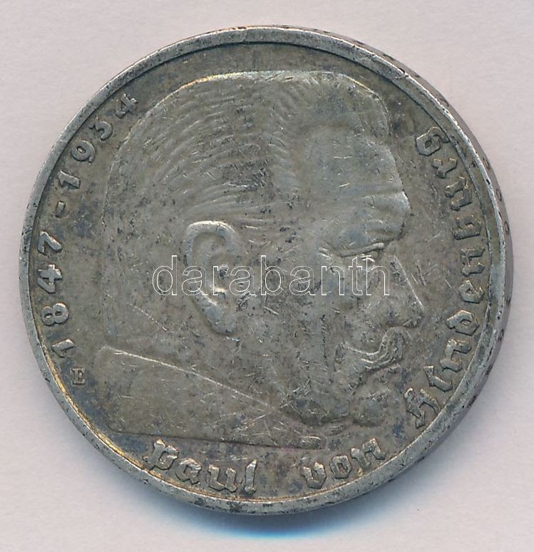 Német Harmadik Birodalom 1936E 5M Ag "Hindenburg" T:2 patina... https://www.darabanth.com/de/339-Fernauktion/339.0/Numismatik/Weltweit-Munzen~1500017/Nemet-Harmadik-Birodalom-1936E-5M-Ag-Hindenburg-T2-patina-German-Third-Reich-1936E-5-Mark-Ag-H~II1908045