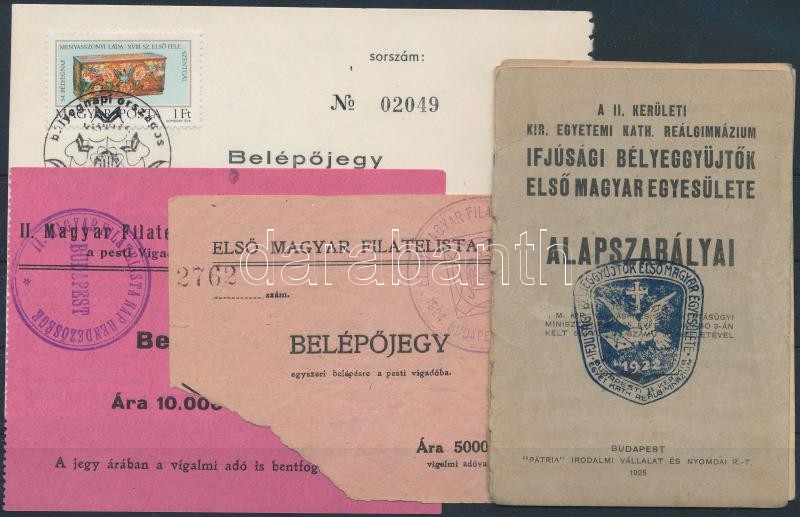 Beschreibung: 3 db Bélyegkiállítás belépő + Ifjúsági Bélyeggyűjtők Egyesülete Alapszabályai