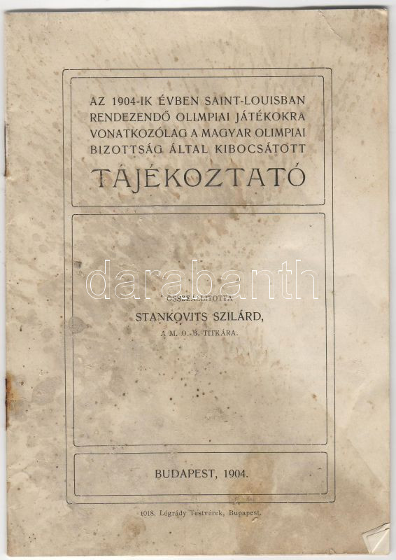 1904 A MOB tájékoztatója a Saint Louis-ban megrendezendő olimpiai játé... https://www.darabanth.com/de/34-Fernauktion/34.0/Andere-Sammelgebiete/~107/1904-A-MOB-tajekoztatoja-a-Saint-Louis-ban-megrendezendo-olimpiai-jatekokra-vonatkozoan~II68069