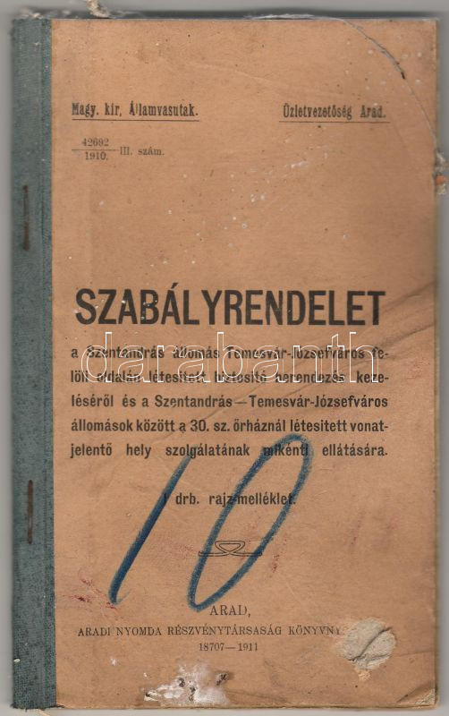 1911 M. kir Államvasutak Szabályrendelet a Szentandrás állomás Temesvá... https://www.darabanth.com/de/34-Fernauktion/34.0/Andere-Sammelgebiete/~107/1911-M-kir-Allamvasutak-Szabalyrendelet-a-Szentandras-allomas-Temesvar-Jozsefvaros-feloli-~II68100
