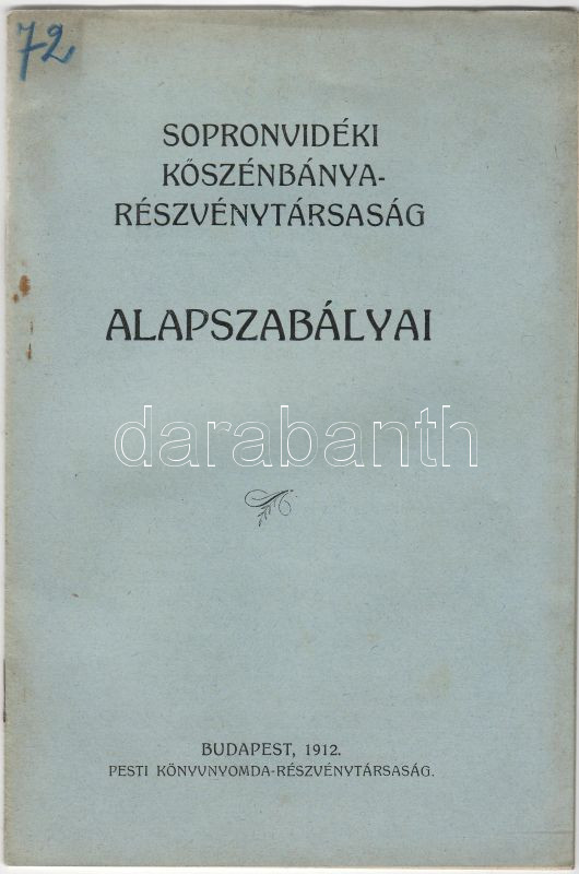 1912 A Sopronvidéki kőszénbánya Rt. alapszabályai https://www.darabanth.com/de/34-Fernauktion/34.0/Andere-Sammelgebiete/~107/1912-A-Sopronvideki-koszenbanya-Rt-alapszabalyai~II68073