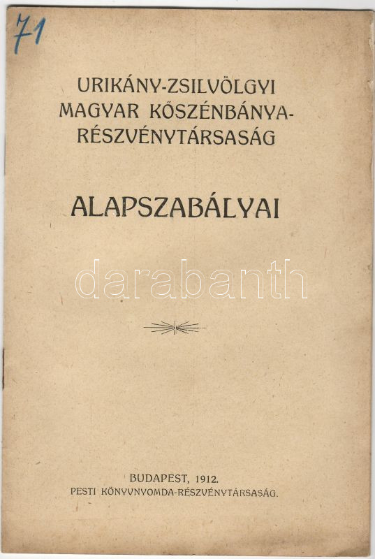 1912 Az Urikány-Zsilvölgyi Magyar Kőszénbánya Rt alapszabályai https://www.darabanth.com/de/34-Fernauktion/34.0/Andere-Sammelgebiete/~107/1912-Az-Urikany-Zsilvolgyi-Magyar-Koszenbanya-Rt-alapszabalyai~II68082