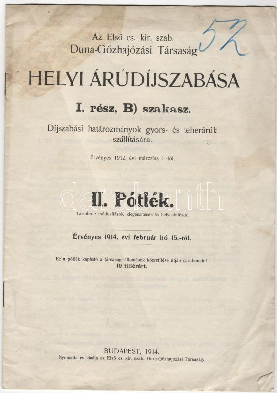 1914 Az Első Duna-Gőzhajózási Társaság Helyi Árúdíjszabása https://www.darabanth.com/de/34-Fernauktion/34.0/Andere-Sammelgebiete/~107/1914-Az-Elso-Duna-Gozhajozasi-Tarsasag-Helyi-Arudijszabasa~II68065
