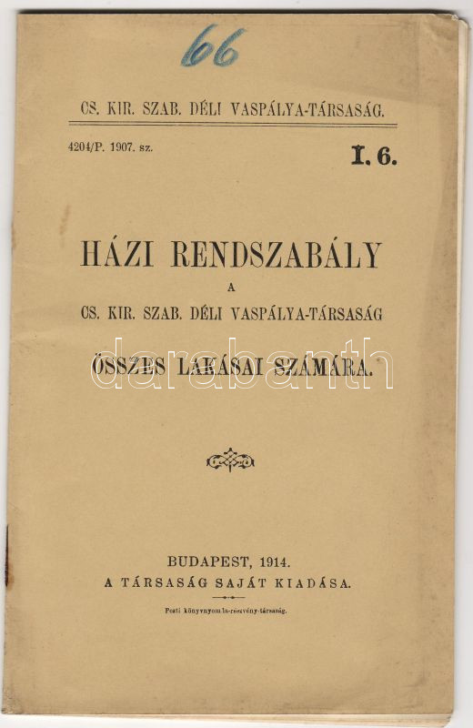 1914 Házi rendzsbály a cs. kir. szab. déli vaspálya társaság összes la... https://www.darabanth.com/de/34-Fernauktion/34.0/Andere-Sammelgebiete/~107/1914-Hazi-rendzsbaly-a-cs-kir-szab-deli-vaspalya-tarsasag-osszes-lakasai-szamara~II68110